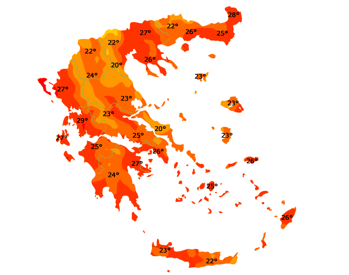 Οι θερμοκρασίες θα πέσουν αρκετά-Δείτε τις μέγιστες τιμές την Παρασκευή όπου θα κορυφωθεί η πτώση της θερμοκρασίας: